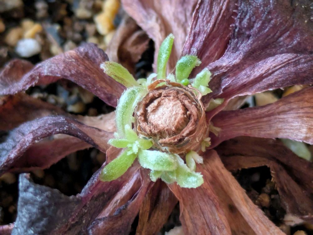 2枚目はアエオニウムのブラックキングコング 2月にカットしたあと 残りの葉っぱは枯れてしまったので放置していたら緑の物が見えだしたので お水をあげるようになったら成長してきたようです 捨てないでよかった😊