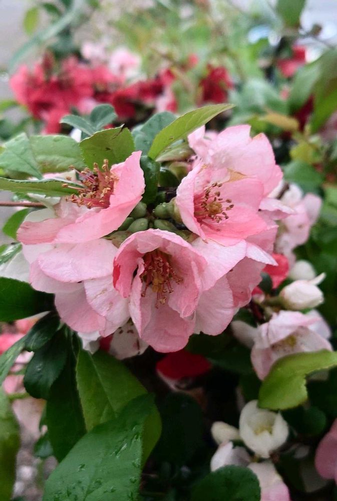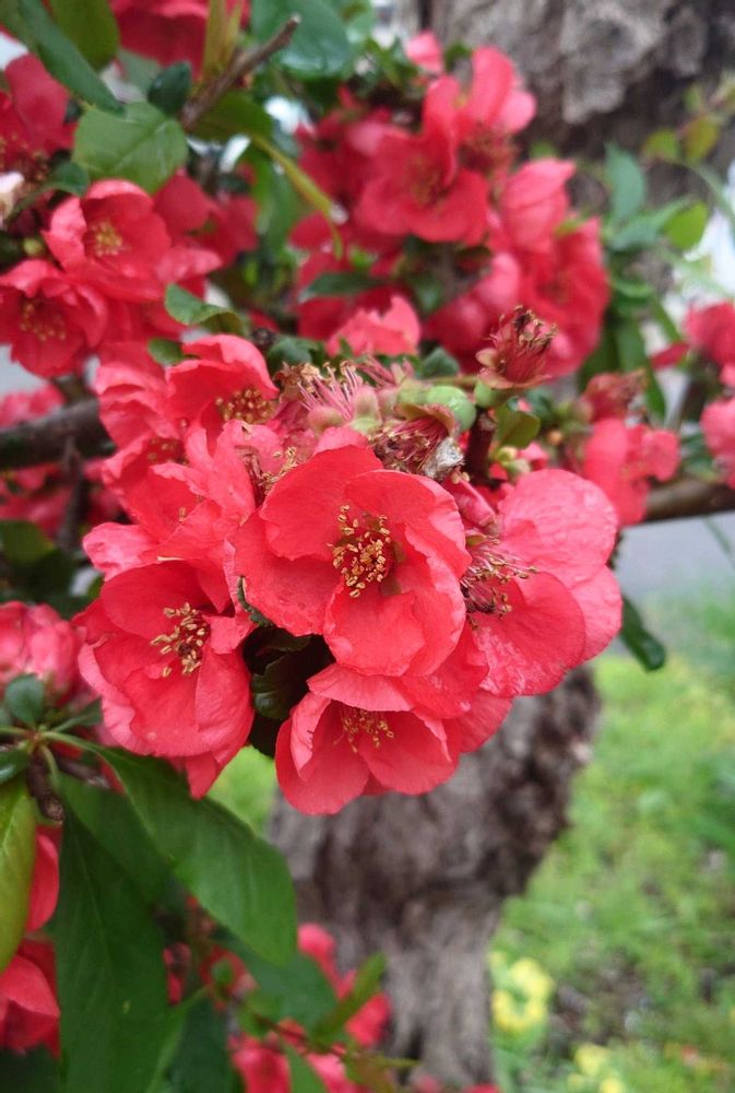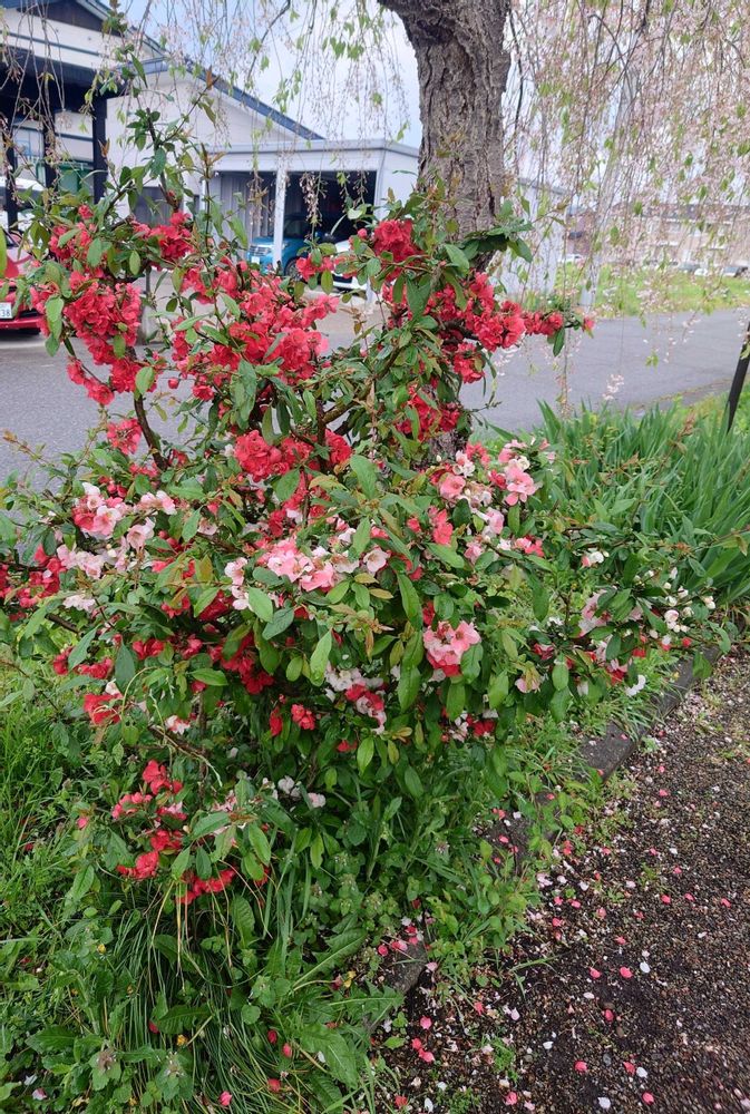 しだれ桜のシーズンが終わった後 ひっそりとボケが咲いてました
