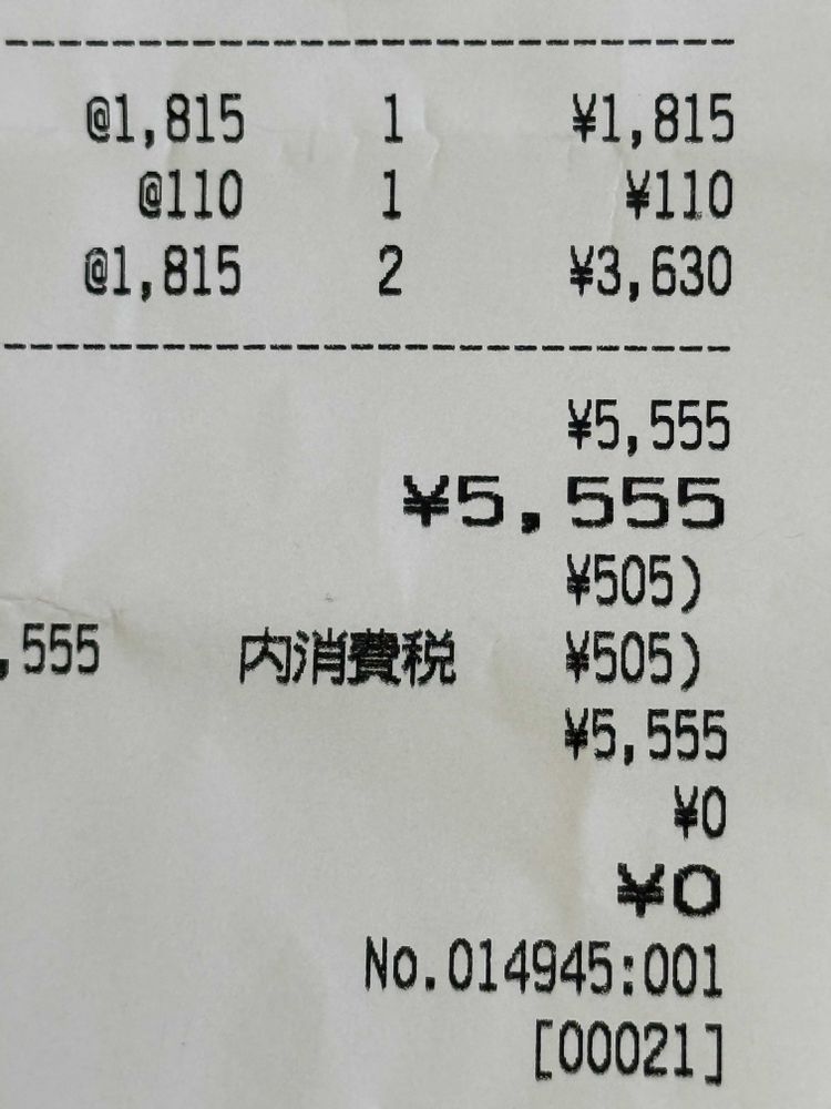 東京から帰って来た娘は誕生日のため、食事後レシート🧾を見てびっくり‼️