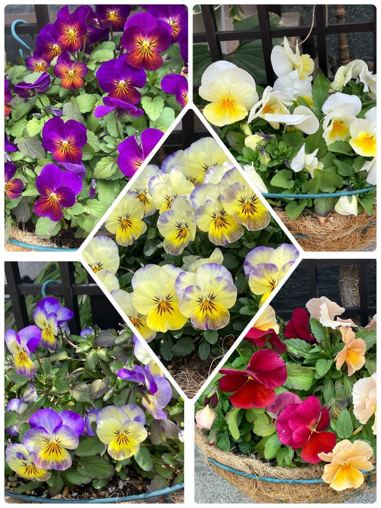 ②は5つのハンギングの中のビオラさんです♪ コラージュにしました