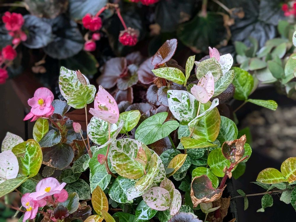 ミニ薔薇・ユキノシタ・パンダスミレ・ハツユキカズラ🎵🎶(๑¯◡¯๑)