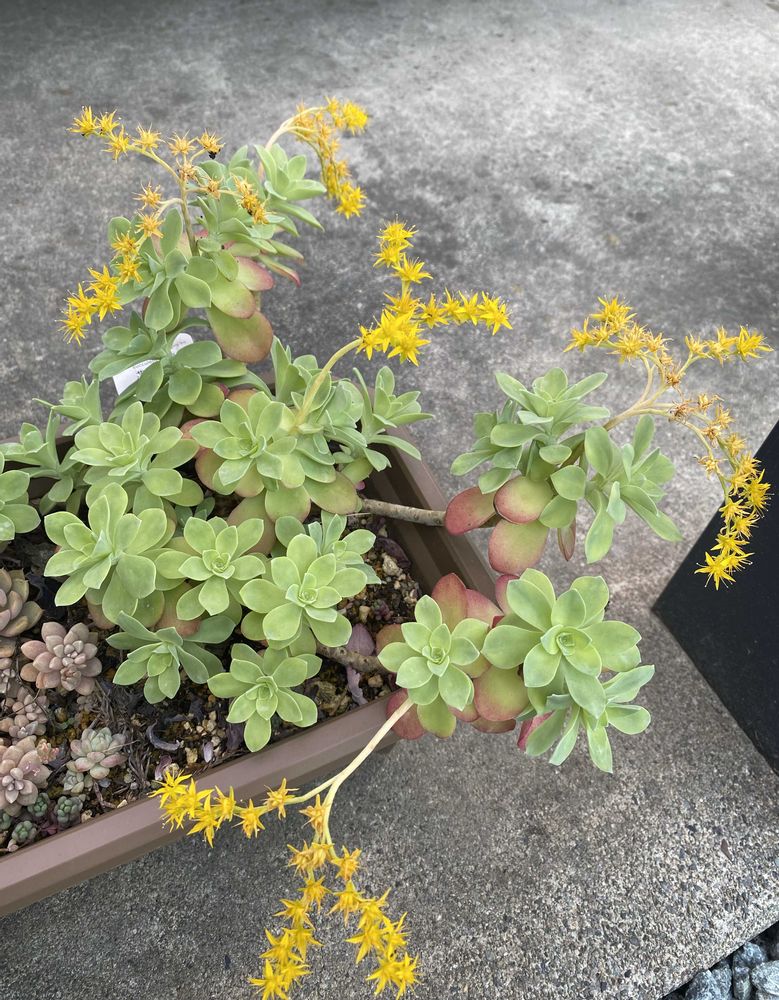 多肉さんもあちこちで、お花が咲き始めました。