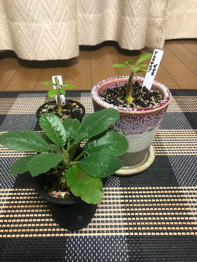 手前のは馴染みの園芸店で狩って来たドルステニアのハイブリッドって、なんかよく分からないやつ〜^_^;