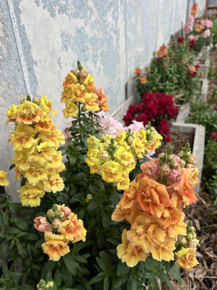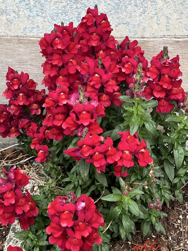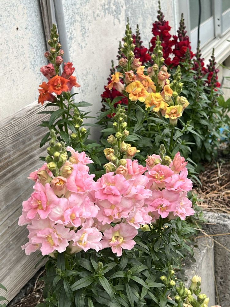 実家の兄の庭の金魚草が赤いベベ着て満開です