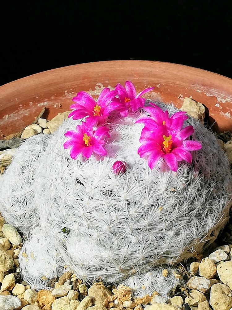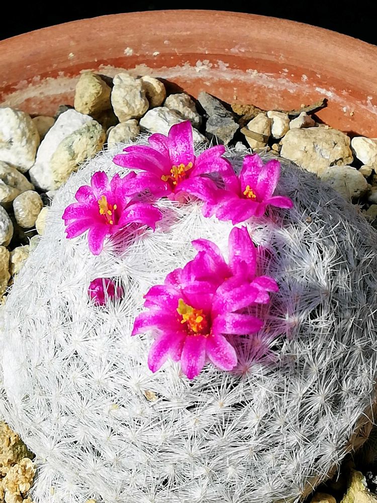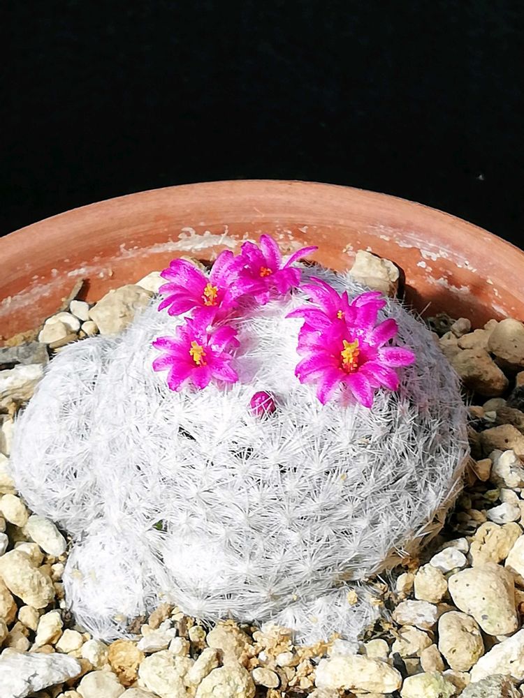 突然ショッキングピンクの花を咲かせ白い刺と花の対比が美しい🌵🌸😍