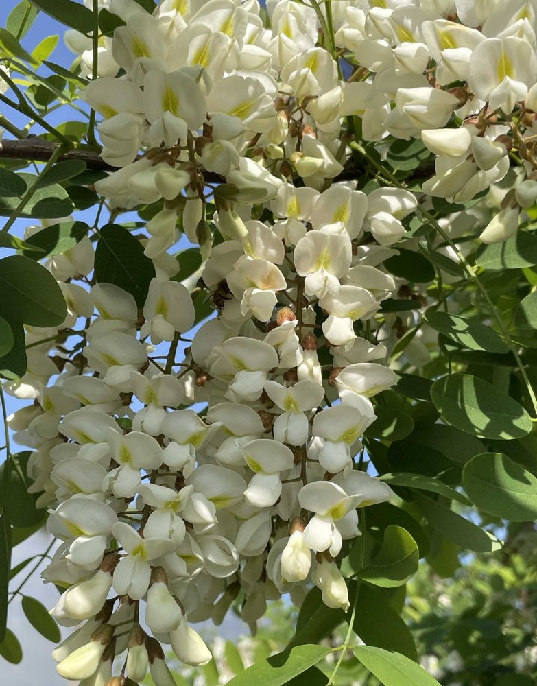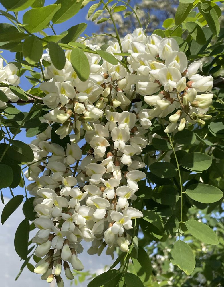 現在住んでいるすぐ近くにニセアカシアの大きな木が数本ありこの時期になると真っ白い花と甘い香りを楽しんでいます♪