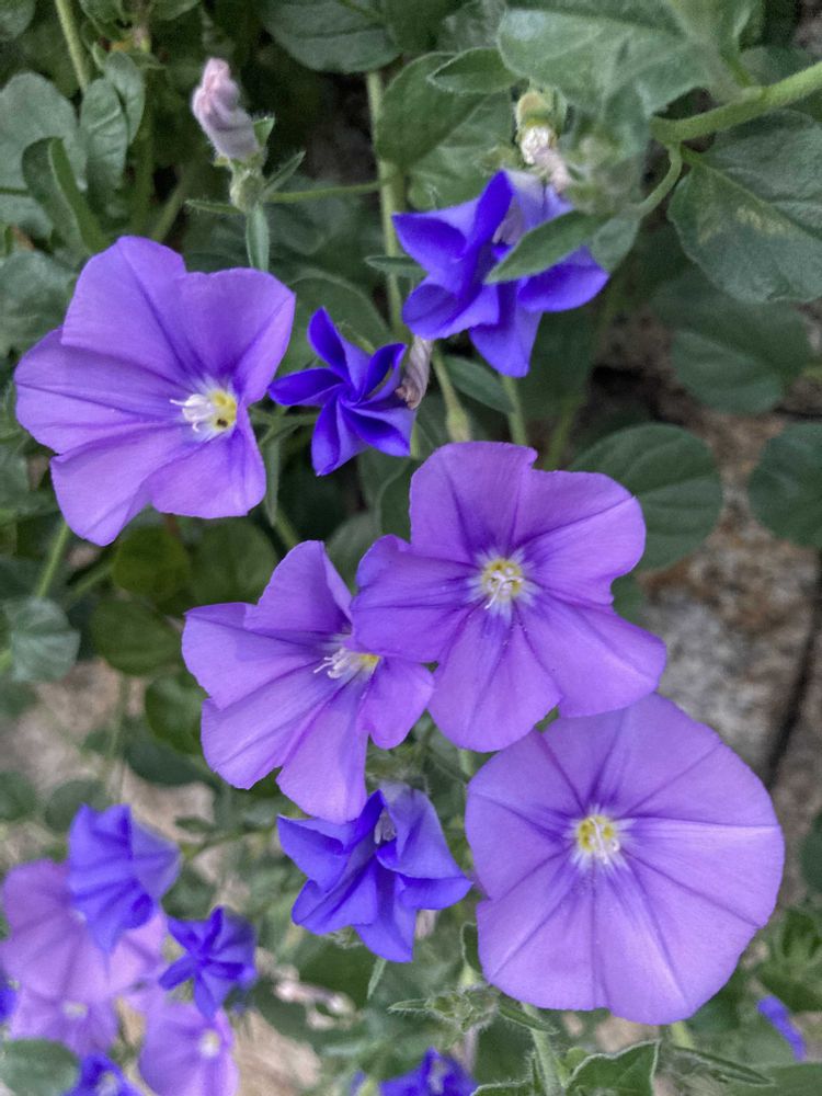 朝顔の小形のような花の形で同じように陽があたると開きます