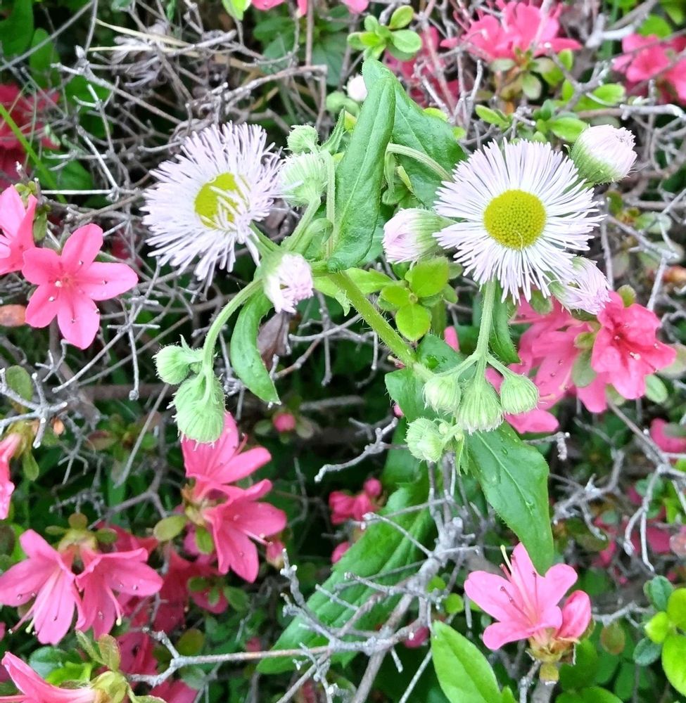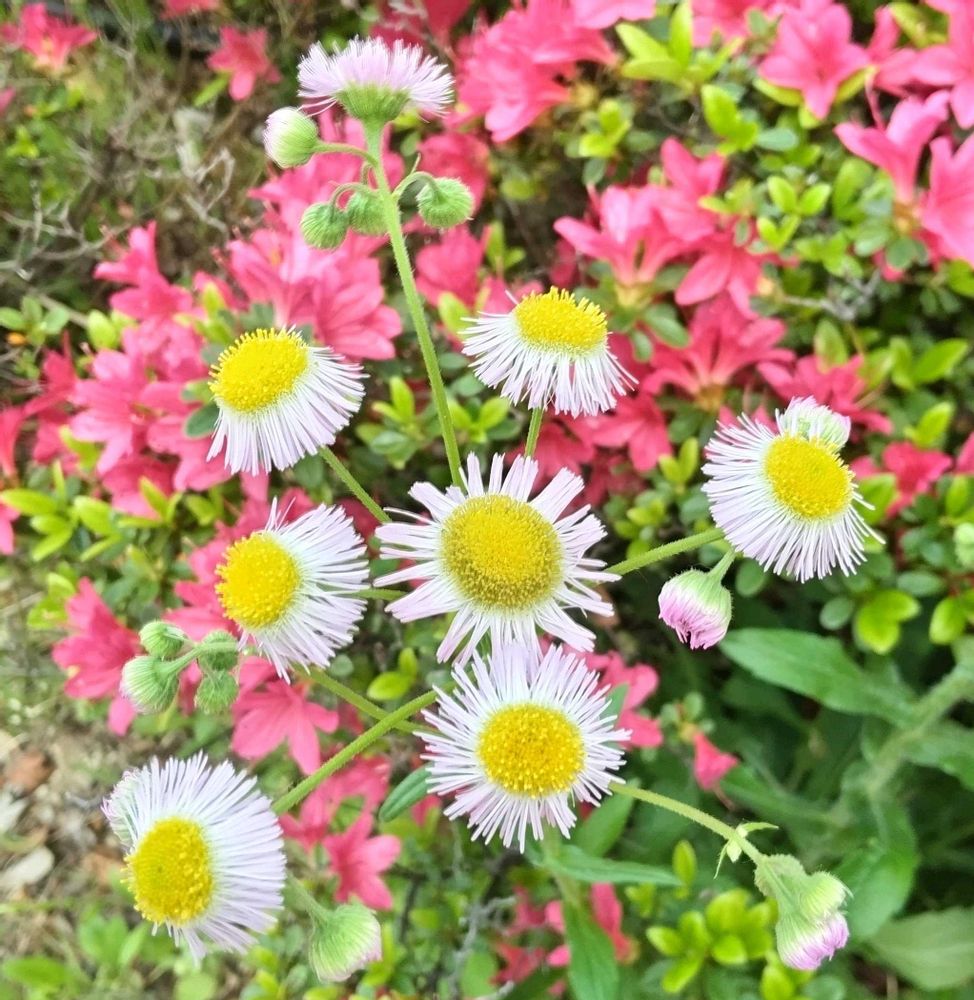 今年は咲いてないなぁと思っていたハルジオンが、植え込みのツツジの間からニョキニョキと姿をみせてくれました❣️