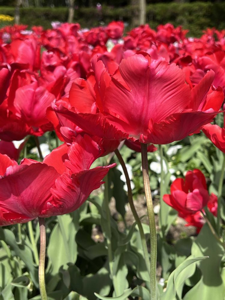 フェア最終日はお天気にも恵まれ大勢の観光客が人気エリア立山の雪の大谷ならぬ花の大谷に並ばれていらしたので見学は諦めましたが、去年一昨年より気温が低い春だったせいか園内のチューリップの大半はまだ十分見頃でした🥰