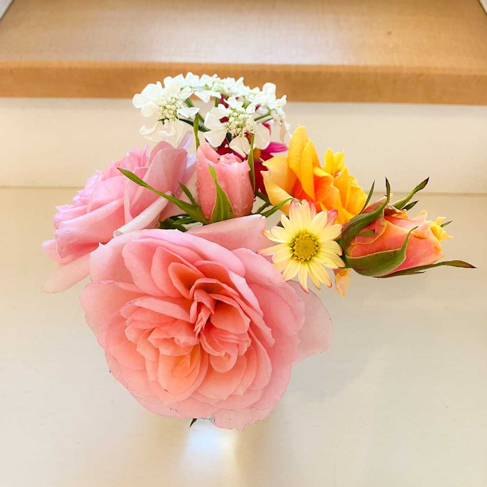 ミニバラの花を集めたらまずまず綺麗な玄関になりました。