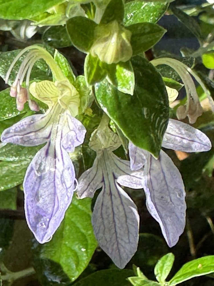 ツリージャーマンダーも雨粒をのせ朝の日差しが、、.