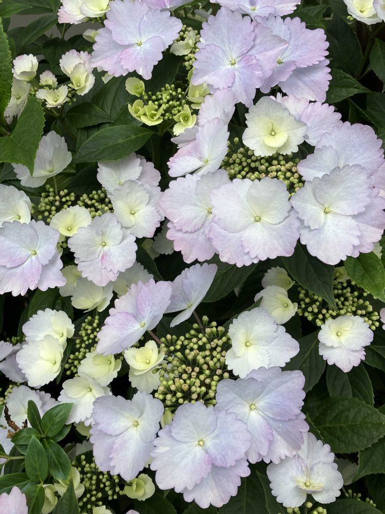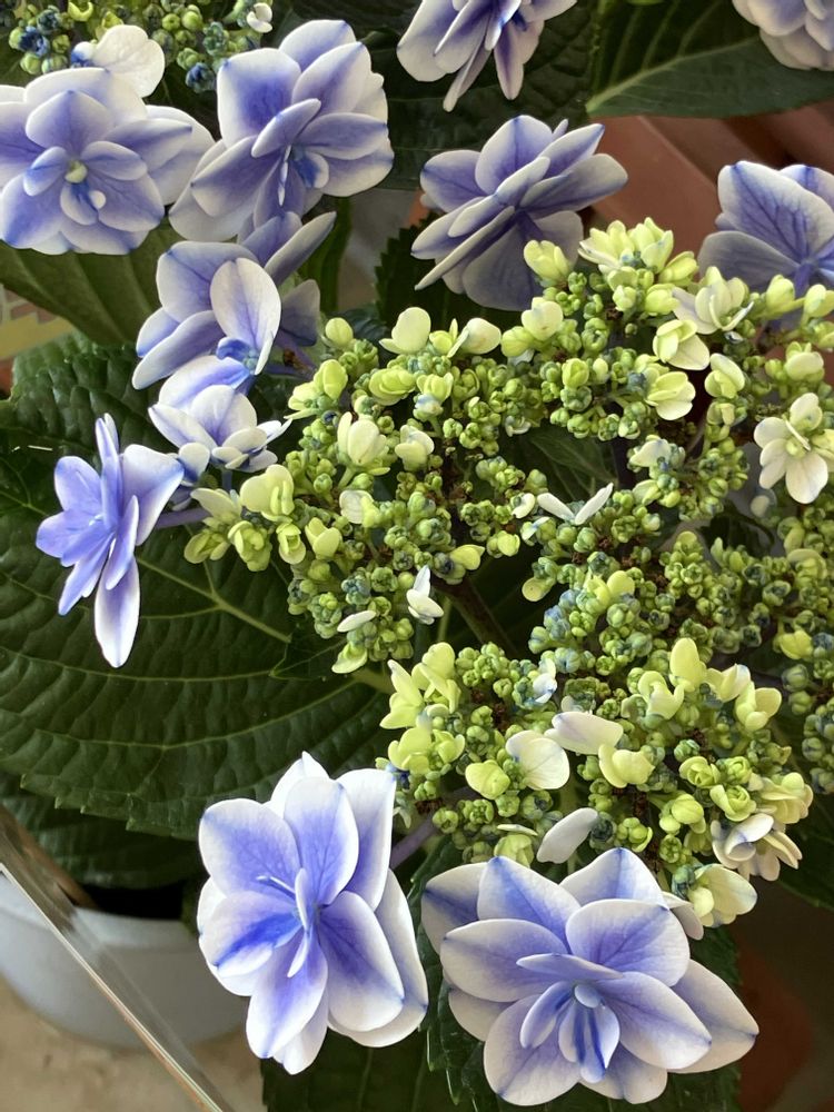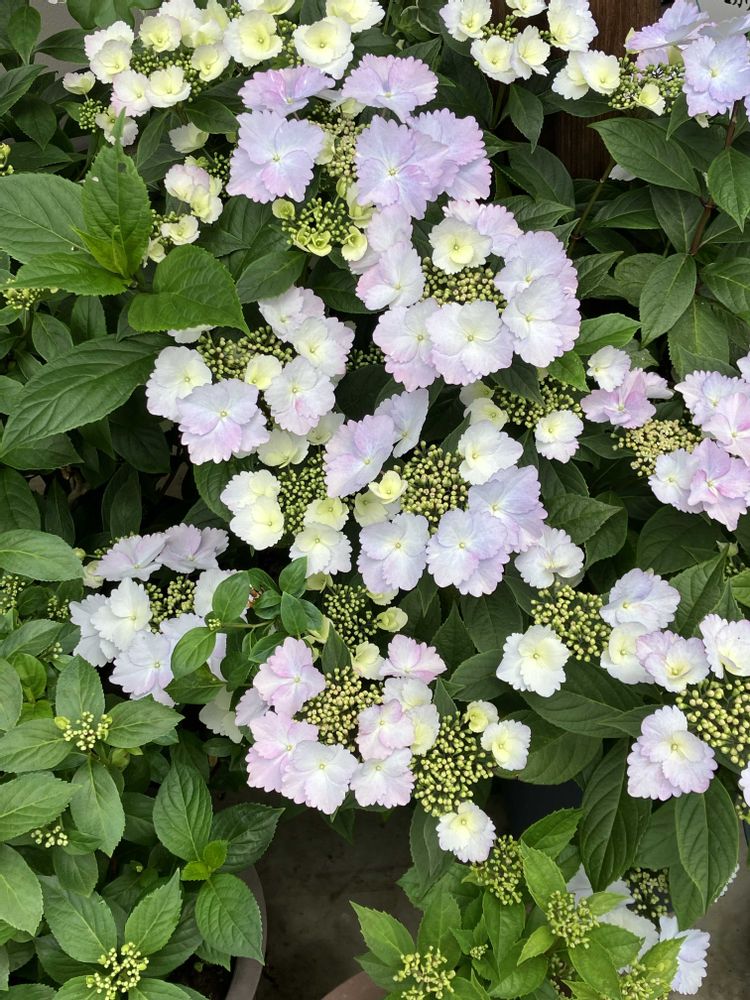 アジサイね〜日当たりの良い軒の下は花が咲くのだけれど そのほかの子達は近年 風通しは良いが日照時間が短いせいか 花芽がつきにくくてね 面白くないのよ…😫💧