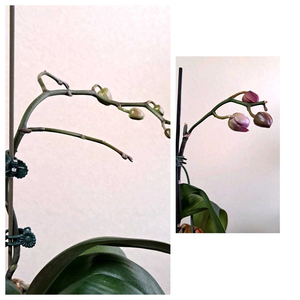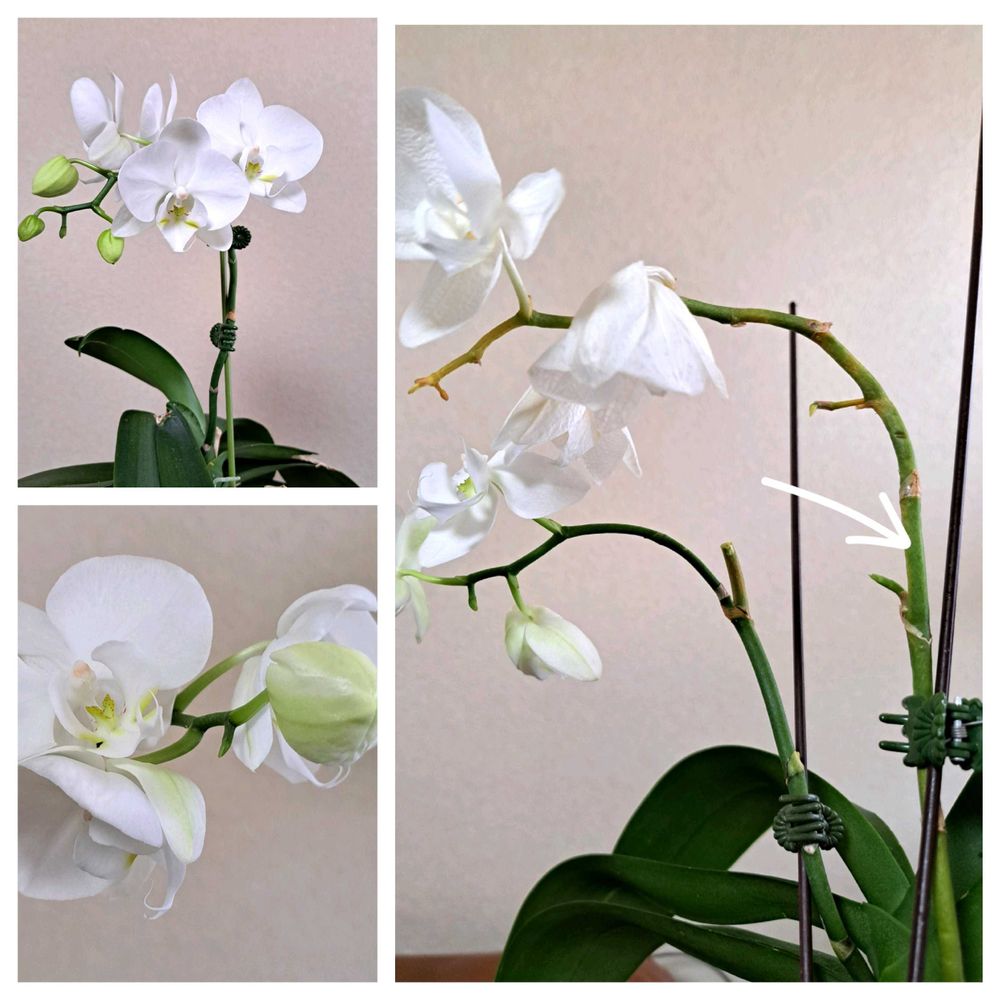 最初は真っ直ぐになるように花茎の下に付けて伸びて来たら…そのクリップを外れて上に付けたらエエよ✌️