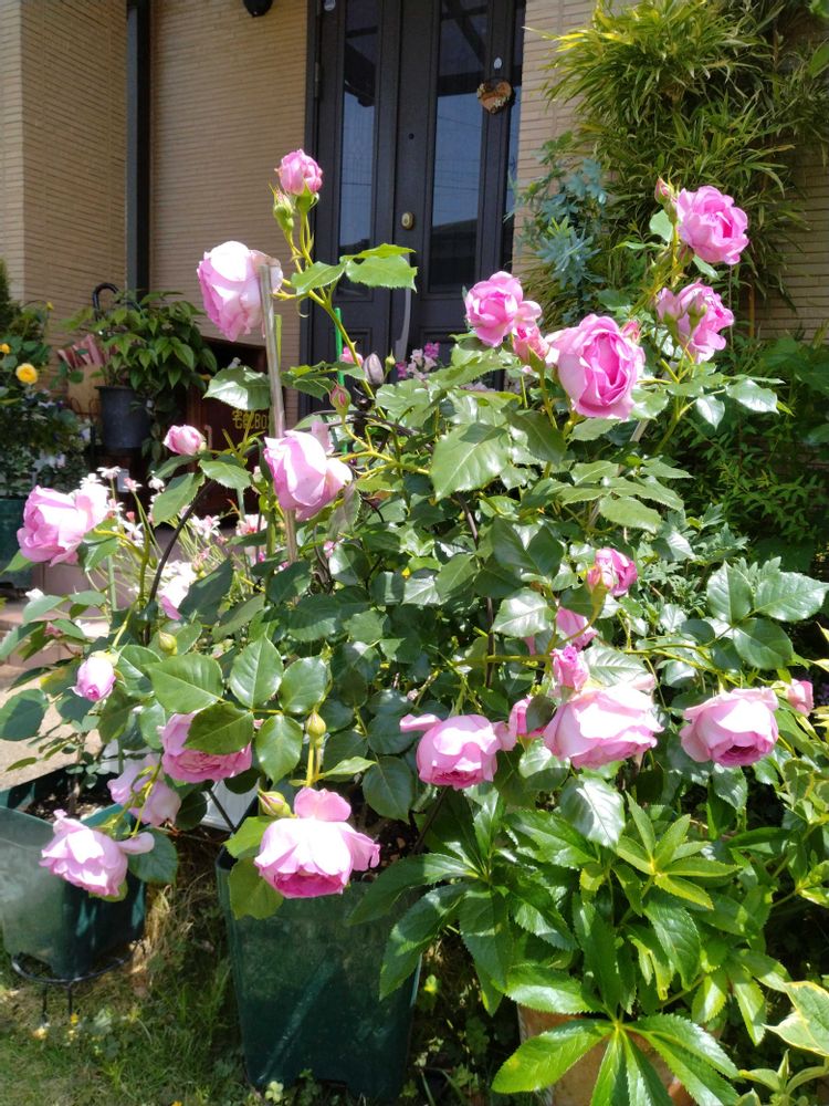 昨年新苗で購入して、これだけ花を咲かせてくれましたが、肥料が多めだからか、元々俯いて咲くのか?枝が柔らかいんです。昨日の雨で少し花が傷んでますが、いい香りで大好きなバラです