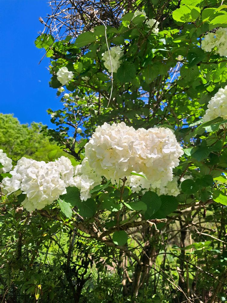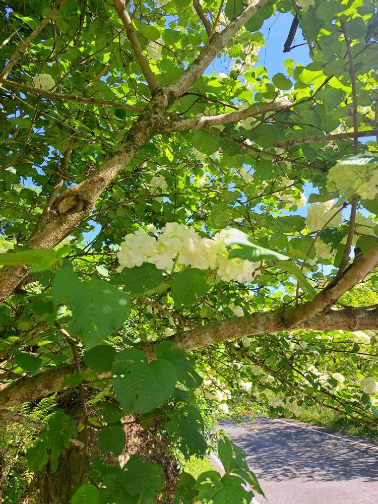 通勤途中の山道で、おおでまりが咲いてました。爽やかで、清々しい雰囲気です😊