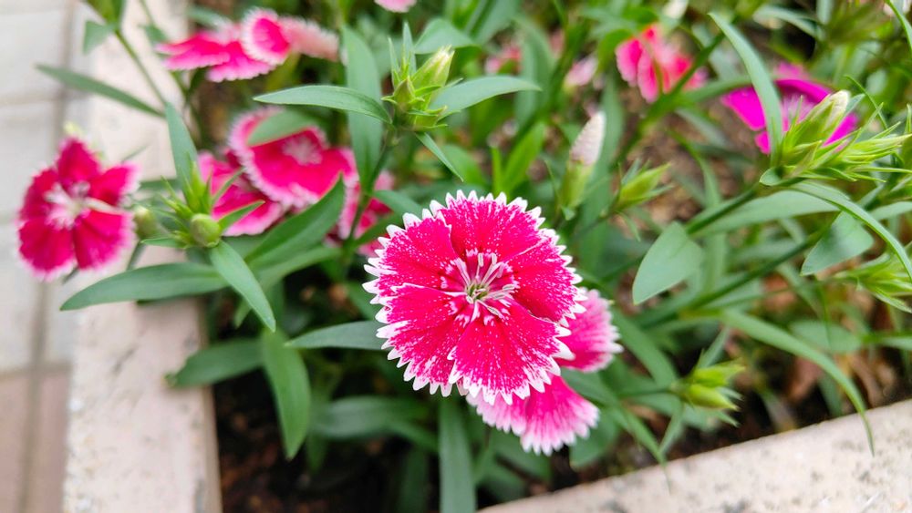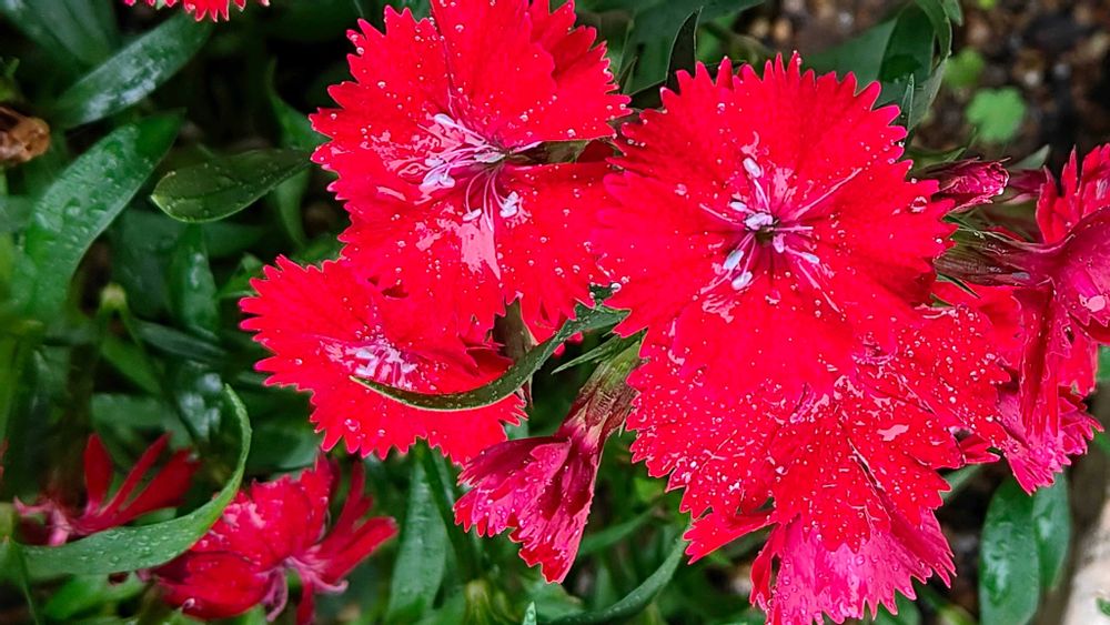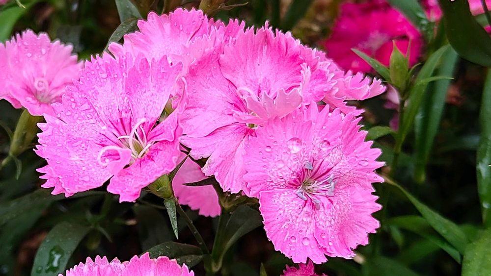 雨粒をのせて咲くナデシコ