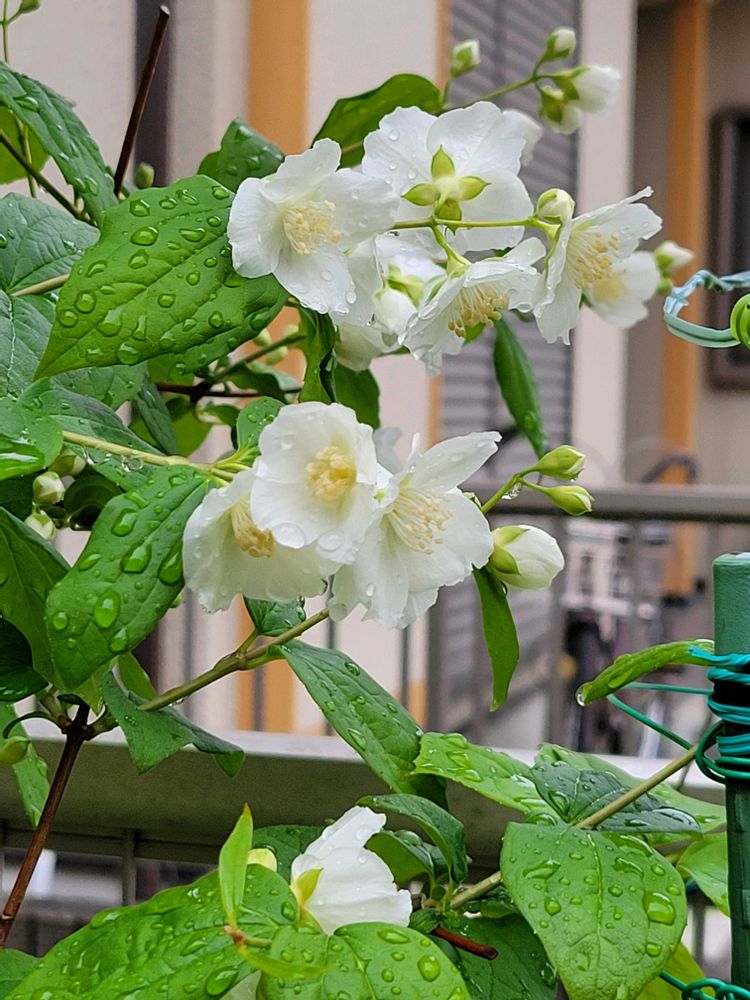 庭のサツキバイ(バイカウツギ)が爽やかに咲き始めました。