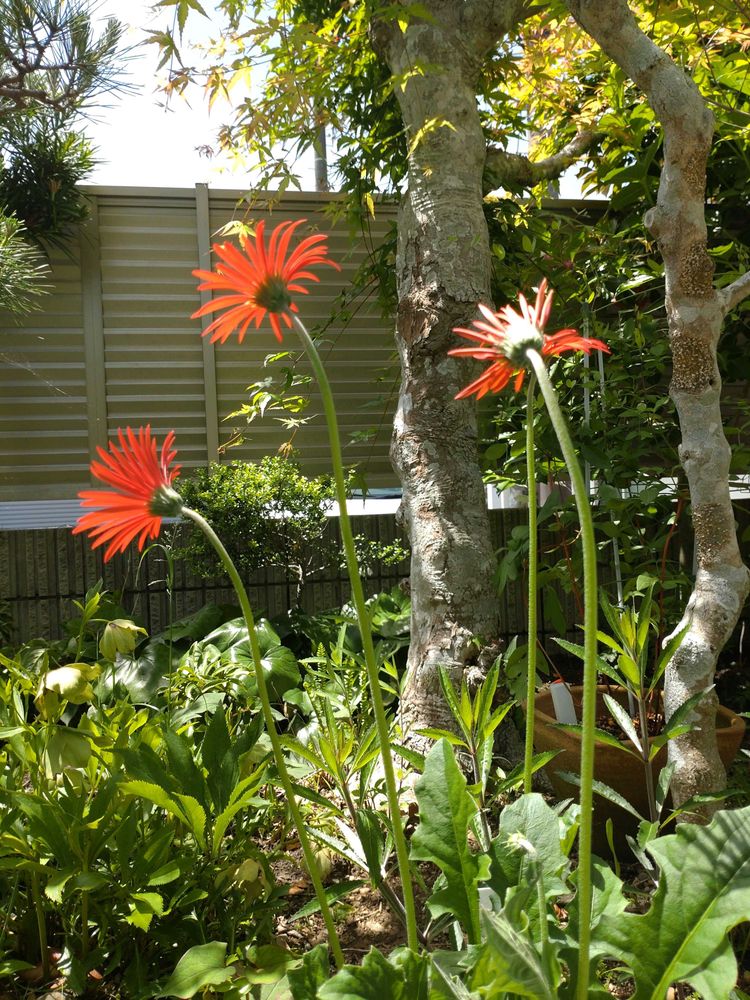 すぅ~と伸びた茎の先に咲いた一重の真っ赤なガーベラ✨