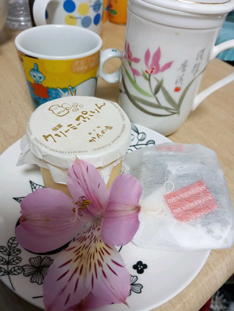 絵🖼️の友達のインド土産でチャイを作リ、美味しく頂きました、外は快晴😎黄色の小花も可愛い🎶🎶🎶