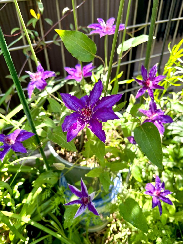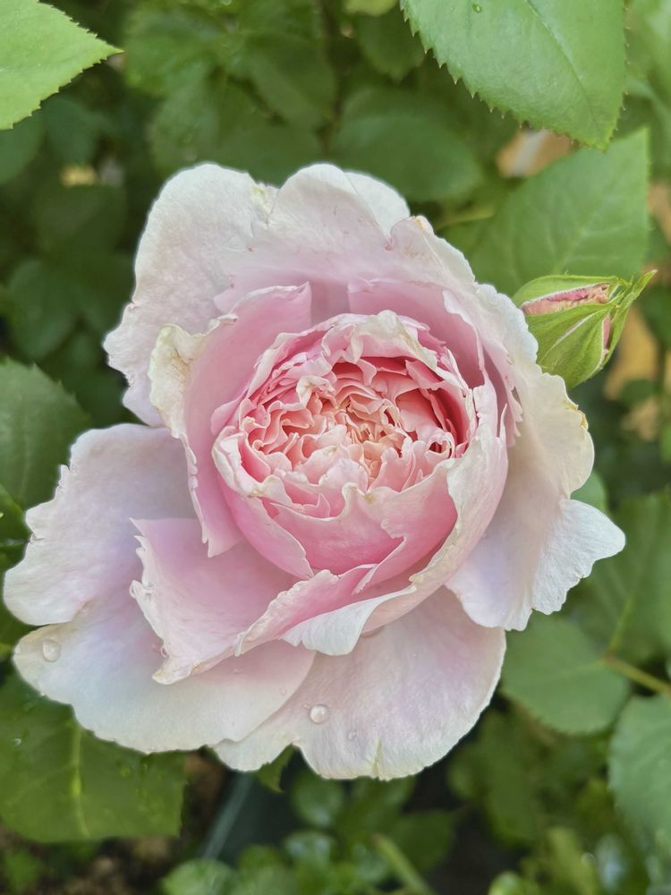 ☀️昨夜☔️降った今日の庭19℃😅安心してたら🌹軒下のバラがぐったり💦薔薇シーズンまで後10日?油断できないなぁ😵
