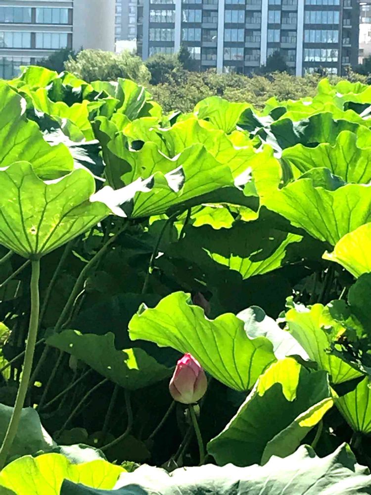 不忍池、蓮の葉は背丈高く、ちょこちょこ色づいているつぼみが見られました☺︎