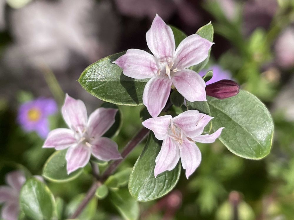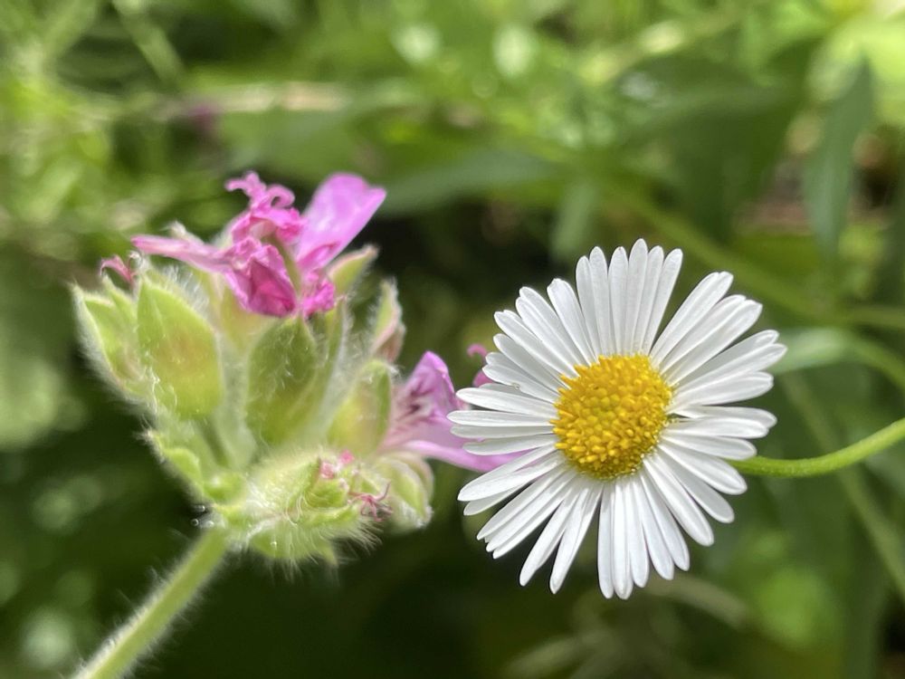 ペラペラヨメナ可愛いですね😊寄り添って咲いているピンクのは何かしら?