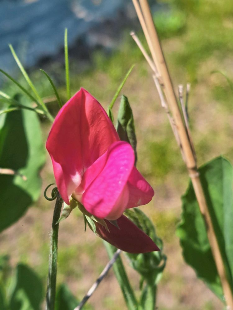 暖かくなってきて、どんどん大きくなってきて、今朝、とってもきれいな赤いスイートピーが咲きました💕