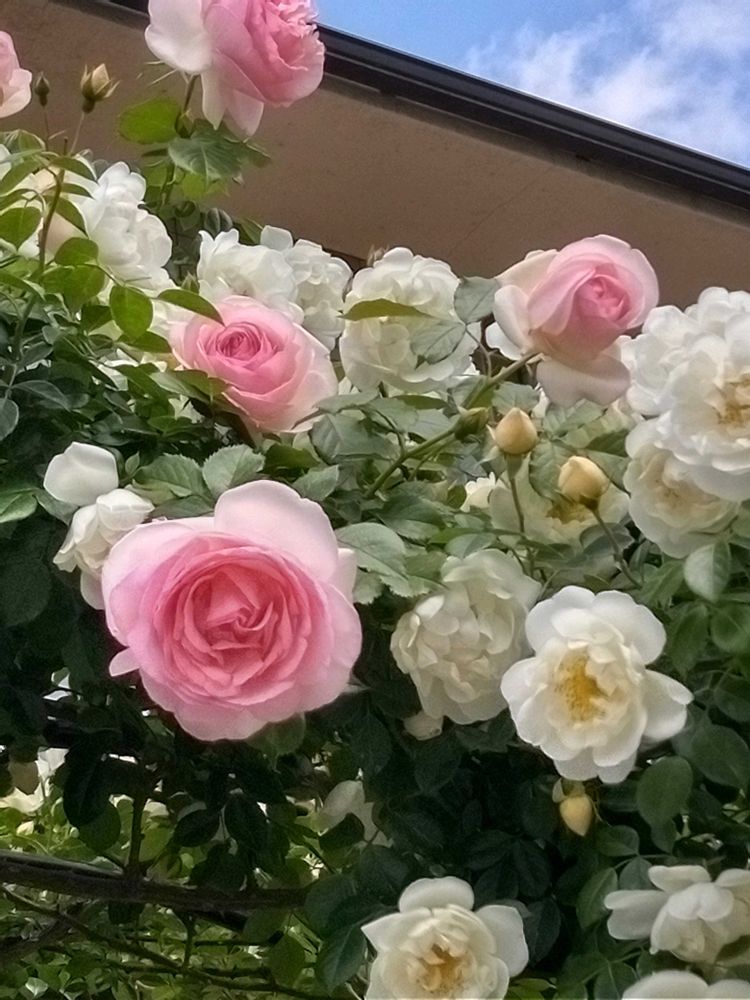 連休明けて仕事に行ったら、職場のお隣の薔薇屋敷、一週間で満開に成っていました。