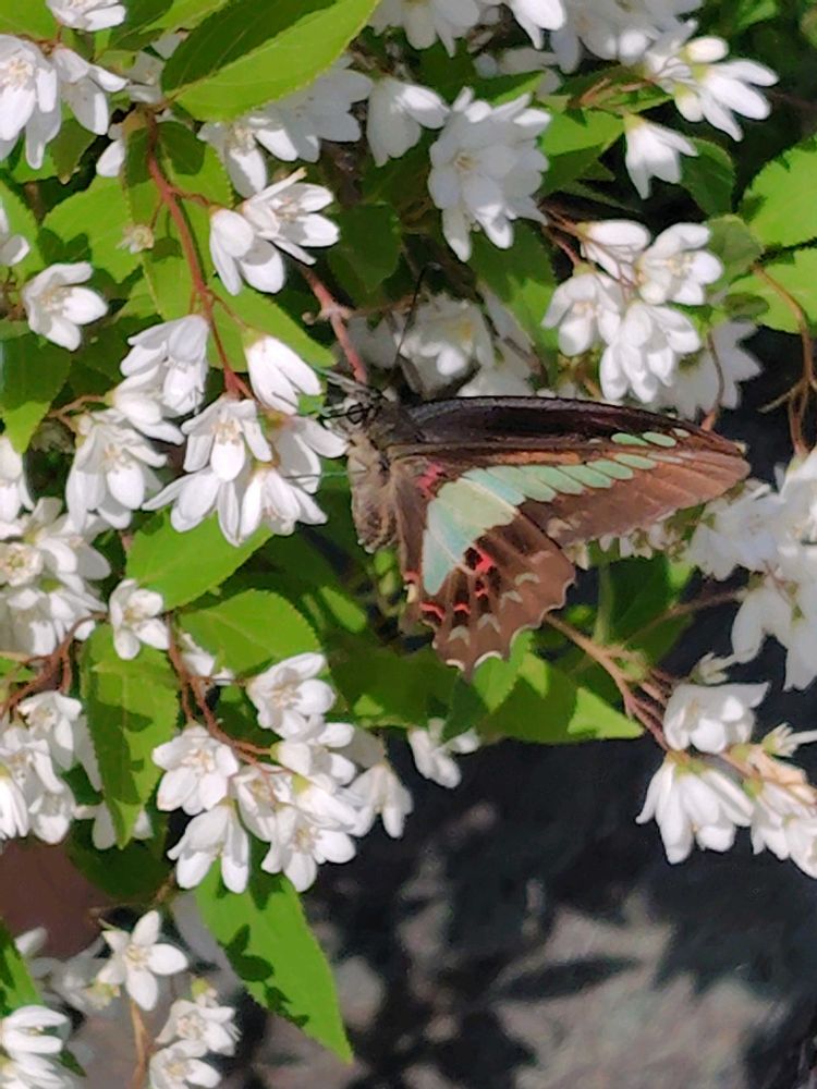 うちにはアオスジアゲハの好物がないようで、いつも通り過ぎるだけです。アッ!と思うと居なくなってる😂