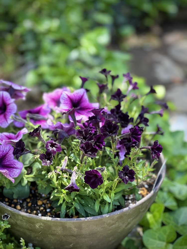 三ツ星品質 ペチュニアテヌート☘️鉢植えにしました。一種類だと寂しい感じがしたので他のペチュニアと一緒にしてみました😊