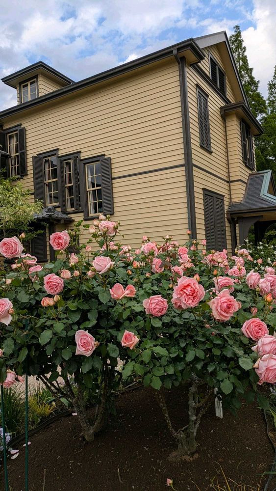 ルピナス、金魚草の花壇も洋館を引き立てて🤔