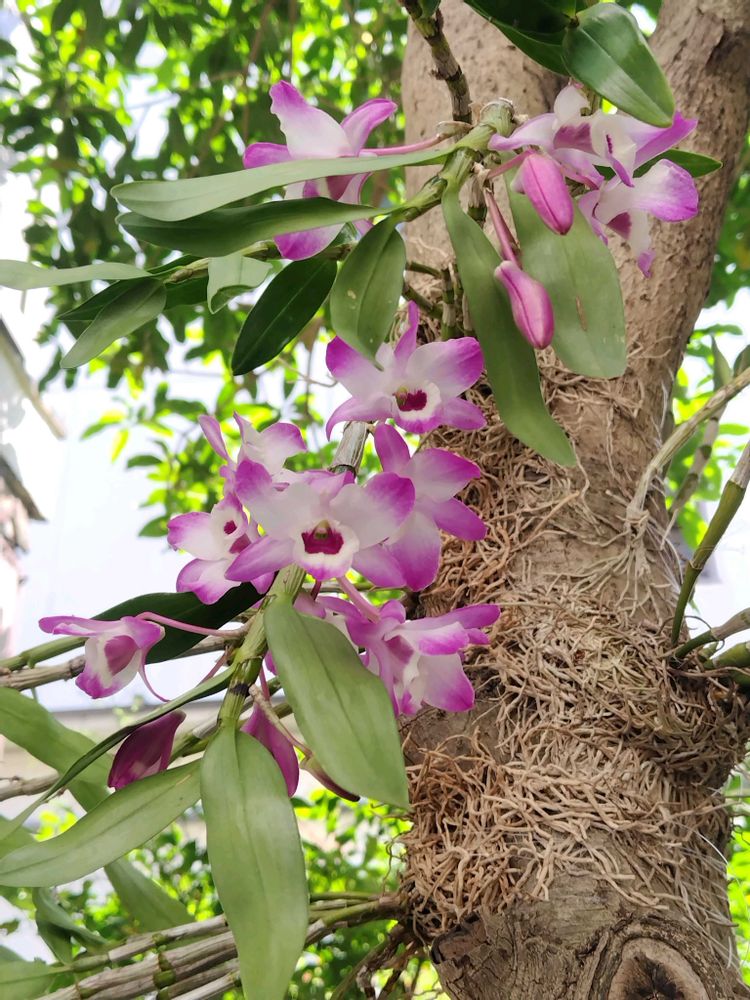 金木犀に適当に着けたデンドロビウムも開花してました。