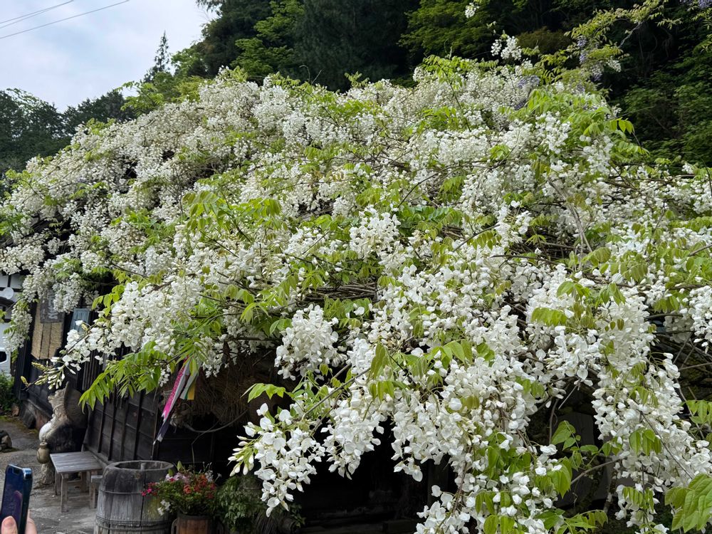 妻籠宿の入り口の店先に咲いてた見事なニセアカシアと思われるお花。プルメリアに似た甘い香りにうっとり