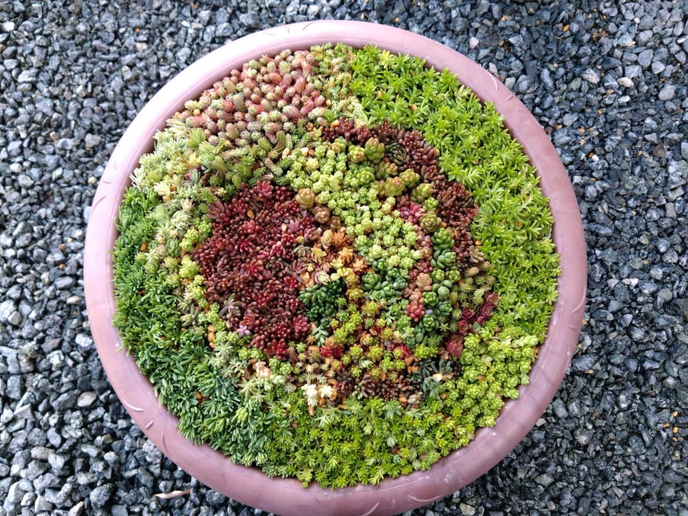 どれも素敵ですが、草系セダムの寄せ植えに声が出てしまいました🤭