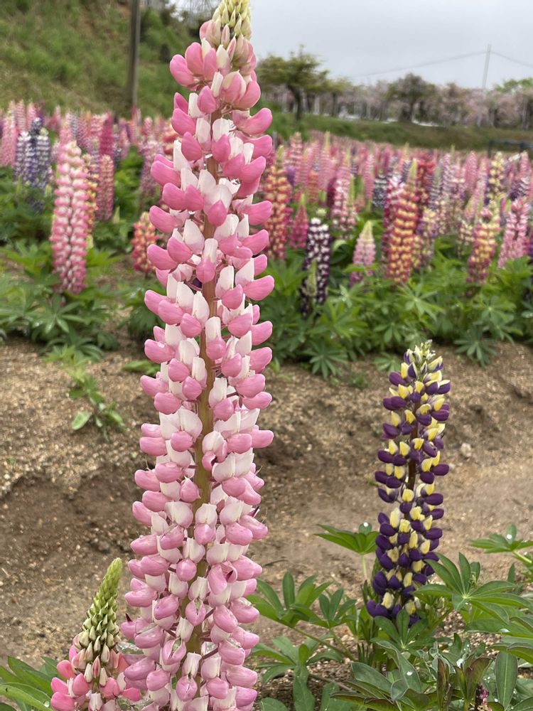 わー色とりどりでかわいい😍上に向かって咲く花は元気が出るね♪こんなにたくさんのルピナスを見るの初めて😊