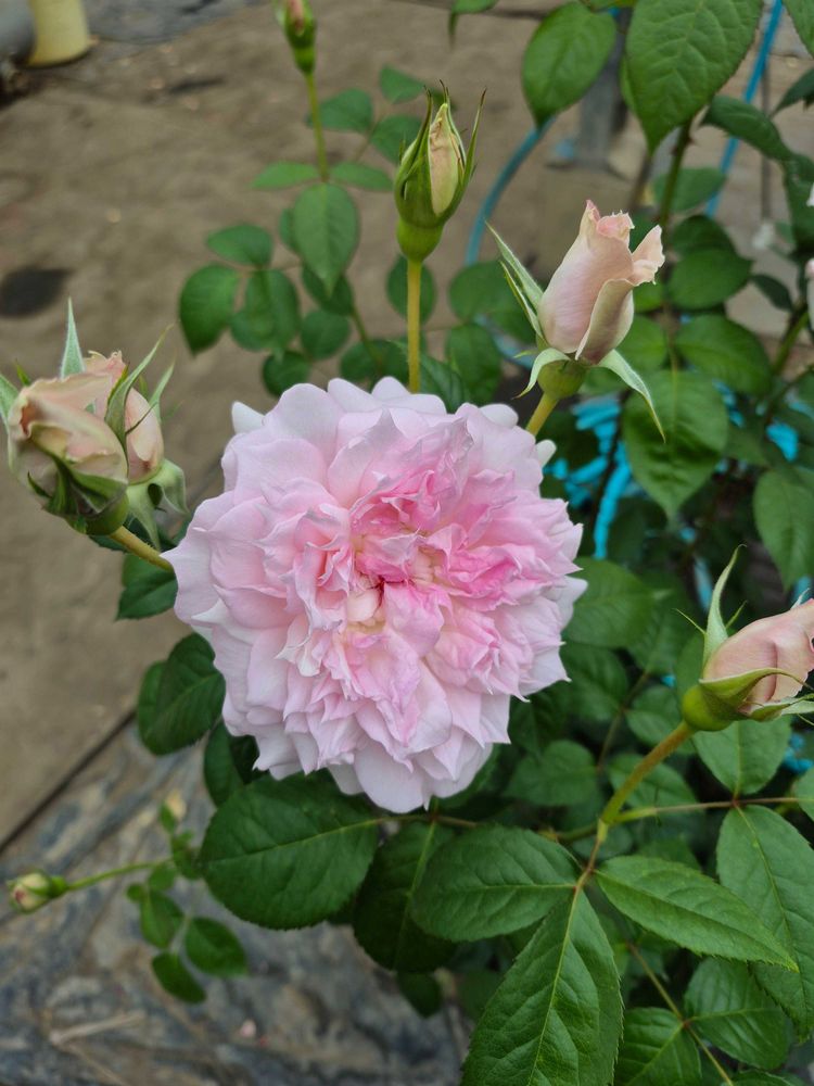 ハウス内は昨年より数は少ないものの、つぼみをたくさんあげた🌹鉢が並んでいました