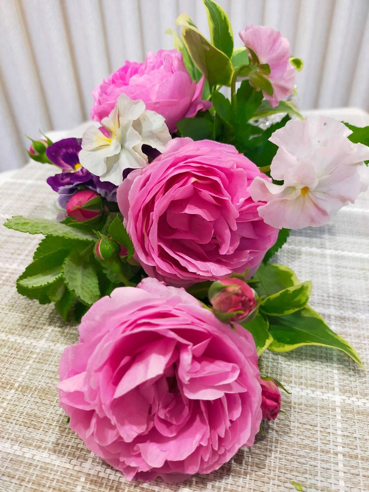 つる薔薇がたくさん咲いているので何人かにおすそ分けしていますよ〜😄🩷