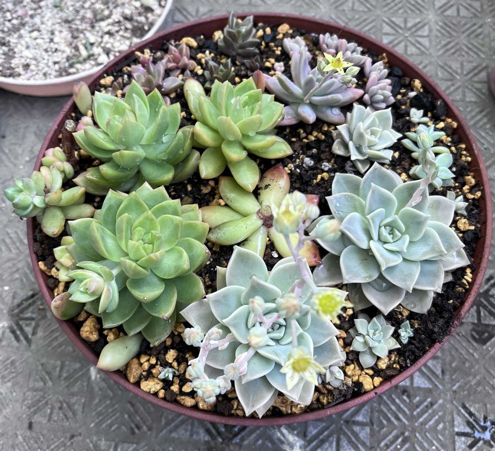 黄麗、薄氷、秋麗、ブロンズ姫の無法地帯となっていた鉢をやっときれいにしました😊久しぶりに黄麗を上から見ました😅