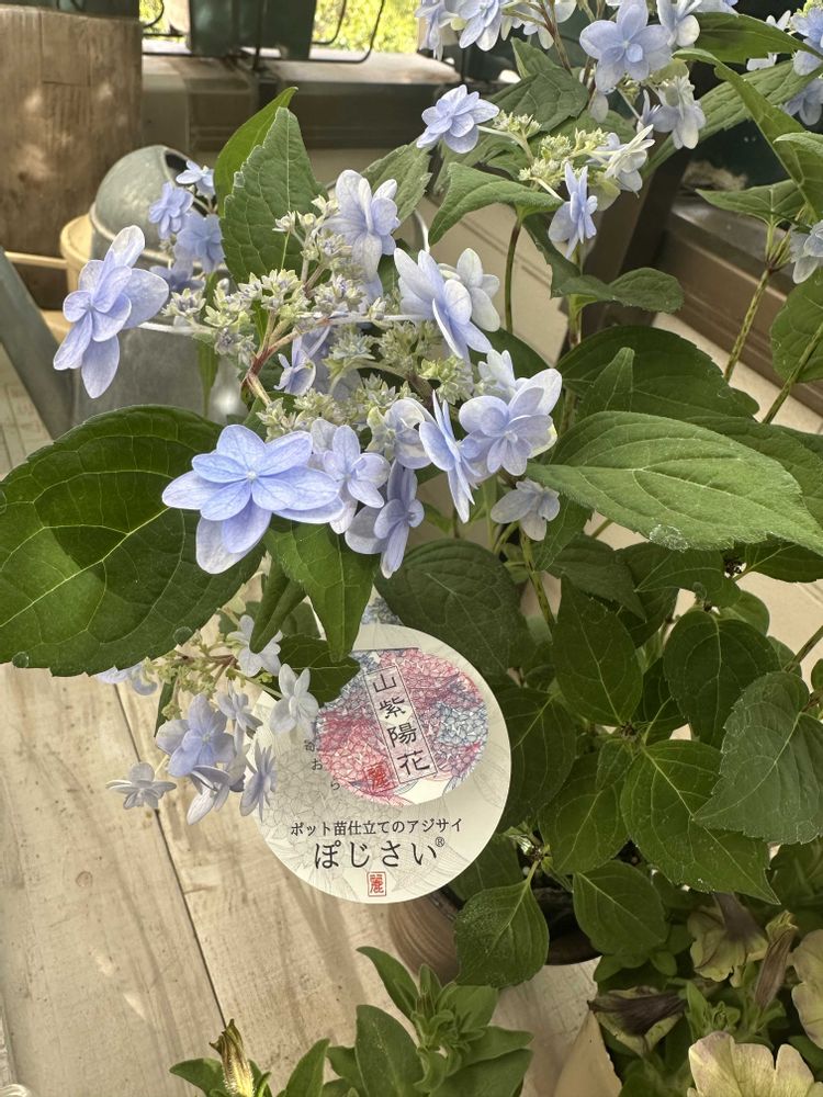 ぽじさいとは、ポット仕立ての小さいアジサイの事だよ。吉岡麗子さんが作ってる寄せ植えとかに使えますよ。っていう小さい仕立てのヤマアジサイなんだ。可愛いよね😍