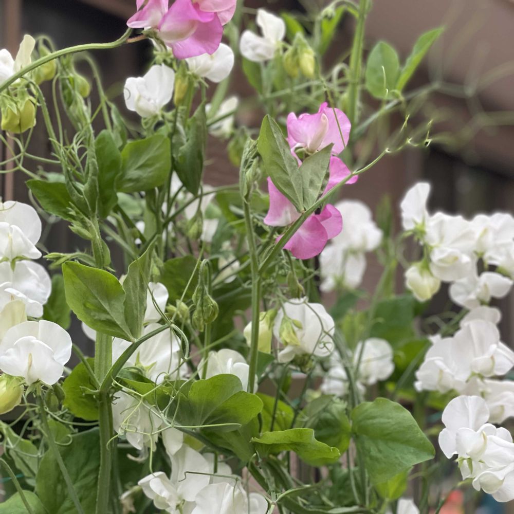 いい香り〜スイートピー🫛色が2色だけになりましたが去年収穫した種から元気に育ちました🥰