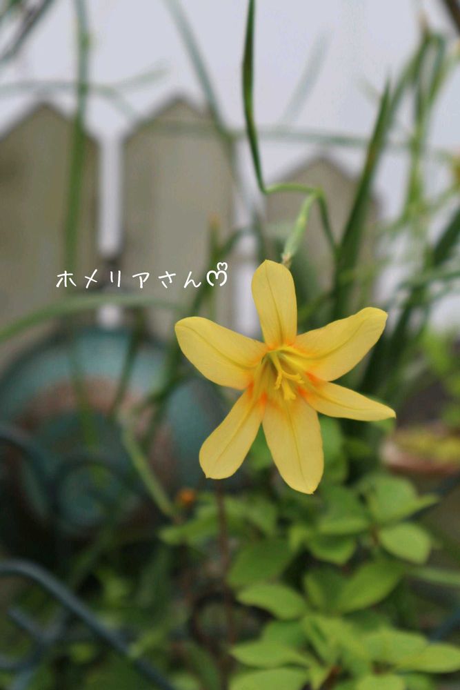 春咲きの球根もどんどん終わり始めましたが、黄色いお花のホメリアさんが咲き始めましたෆ。