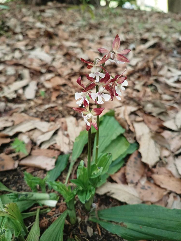 かつては各地の低山に普通に見られた常緑のラン科の植物で、落葉広葉樹林の落ち葉が厚く積もった場所に生え、群生していました。