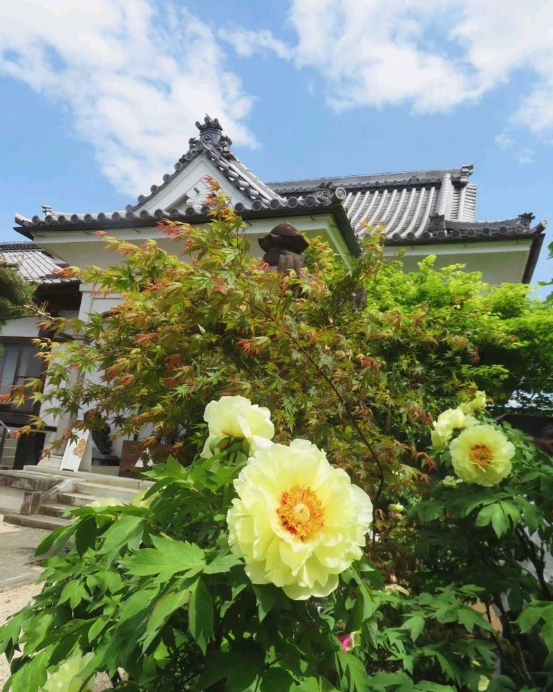 上野東照宮のぼたん苑の様に、整備された規模の大きいぼたん苑も素晴らしいですが、こちらは石段を上がったこじんまりした境内に、こぼれんばかりの大輪のぼたんの登場が思いがけず、oh~😲と感動しました❗️