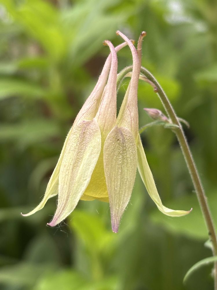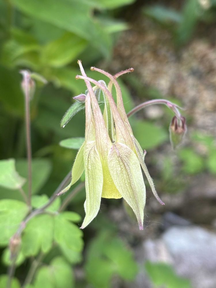この子は、30年以上前に長野県の八島ヶ原湿原で風に揺れる姿に出会って、見初めちゃったんです😍その後、何年も探していたら、麓の茅野市のお店で運命の出会いがありました。お店では上半分が赤茶色の正真正銘の"ヤマ"オダマキでした。ところが、翌年からレモンイエローの花が咲くようになりました。ということは、「ヤマオダマキ」も「キバナノヤマオダマキ」も種類は同じなんだ。それまで別の種類かと思ってたので、びっくりした覚えがあります。