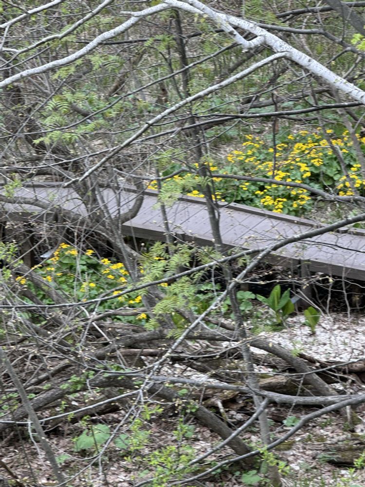 キレイな梅を満喫したあと、湿地帯の木道を散策。水芭蕉はもう終わっていて残念…と思っていたら、鮮やかな黄色のお花がたくさん😃リュウキンカかな?ビタミンカラーのお花に元気いただきました😄