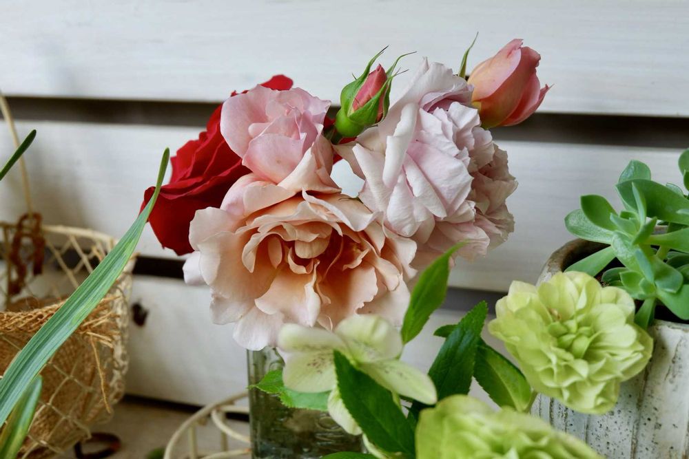 花が濡れて重くて折れてしまい花瓶に刺しました🌹