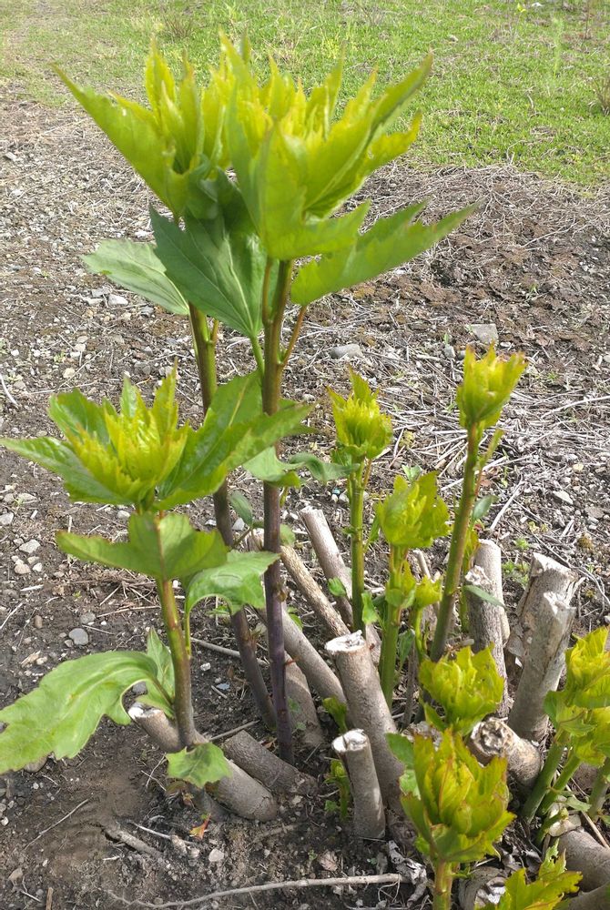 2️⃣ 庭の中で 一番に新芽🌱が いっぱい あがってきた タイタンビカスさん…😋