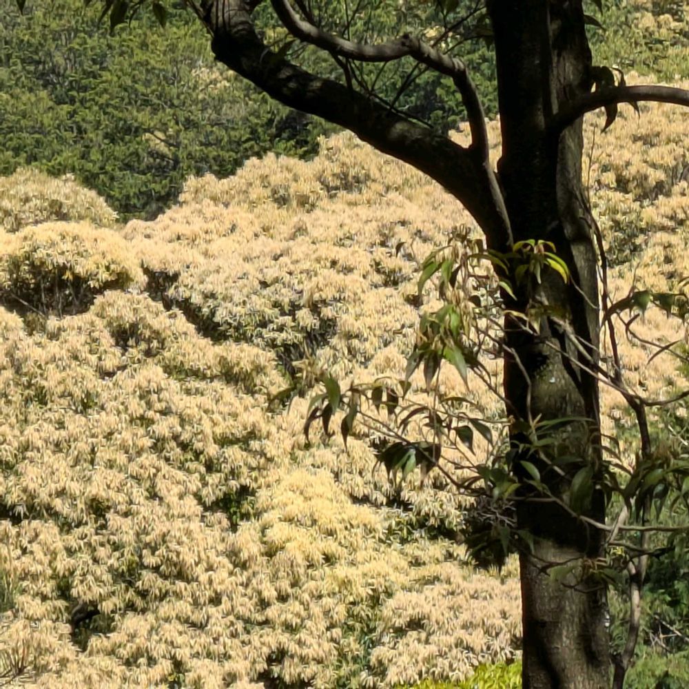 ツブラジイの花で山がモコモコ