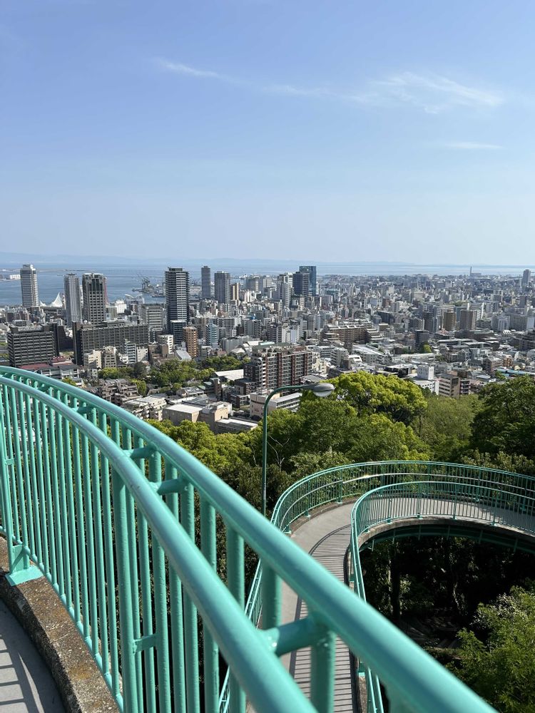 神戸の街を一望できて、その向こうには大阪湾が広がっています