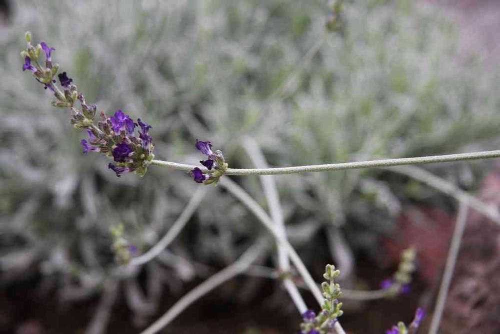 ウーリーラベンダー(Lavandula lanata )の花茎が次から次へと伸びてきて、こんな迷路のような状態になりました😃
